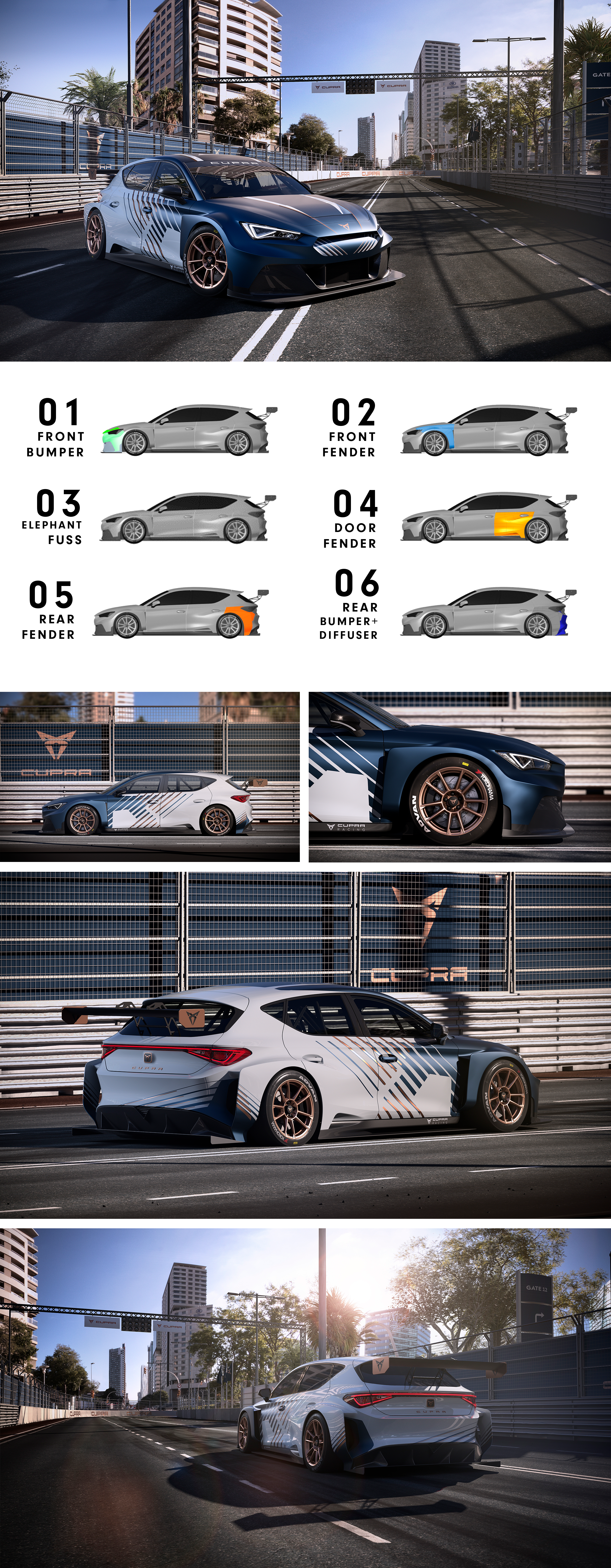 We received the A-surfaces from CUPRA / Seat styling and we made all car partitions, part connection with chassis, reinforcements, thicknesses, etc. Every step needed until the part was ready to send to supplier.